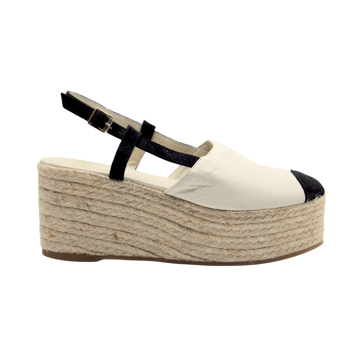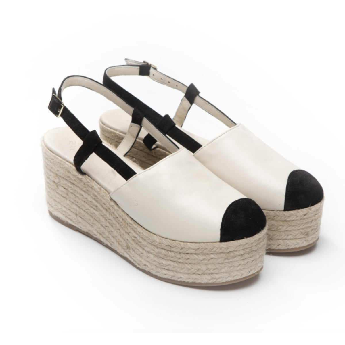 Su cuña trenzada a mano evoca la tradición mediterránea, reinterpretada con un estilo moderno y responsable.