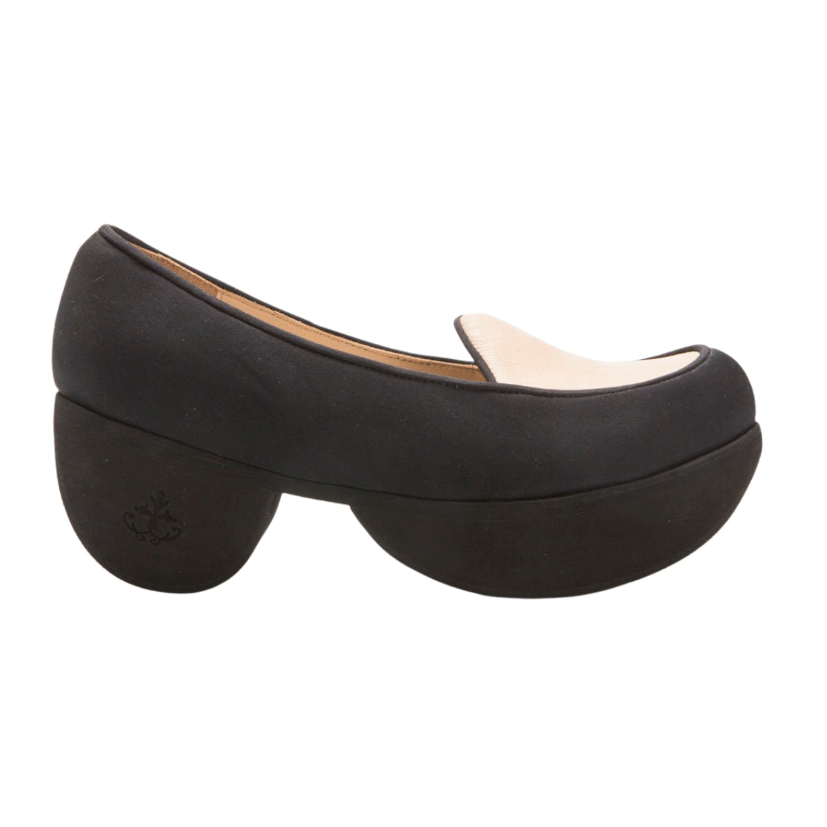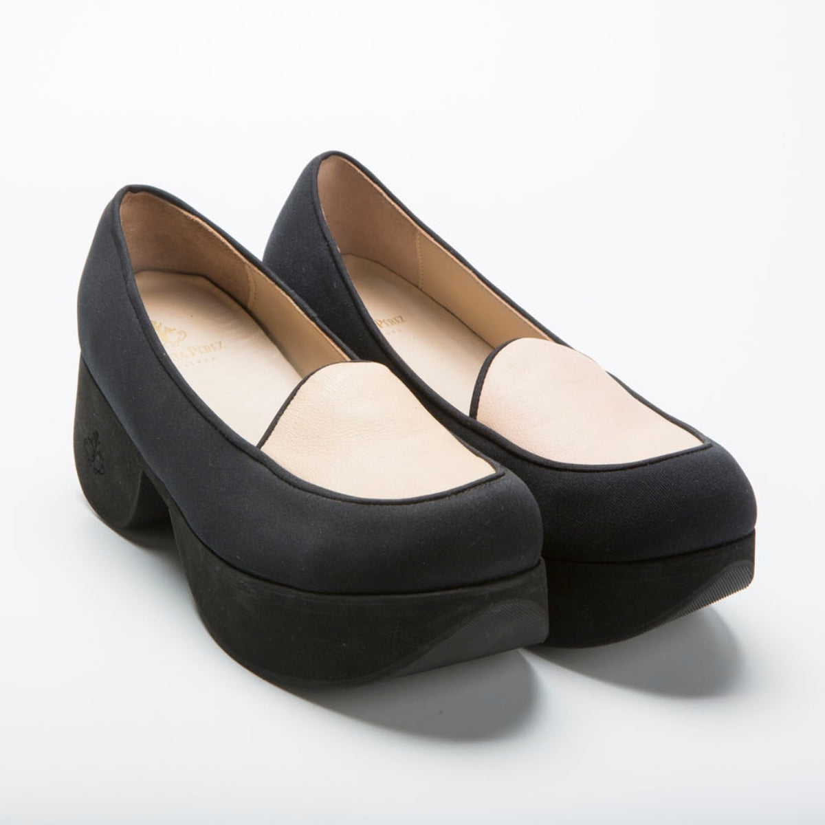 Presenta plataforma uniforme y horma ancha, con puntera redondeada y ligeramente elevada para mayor confort.